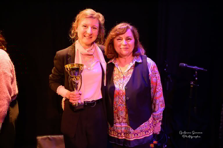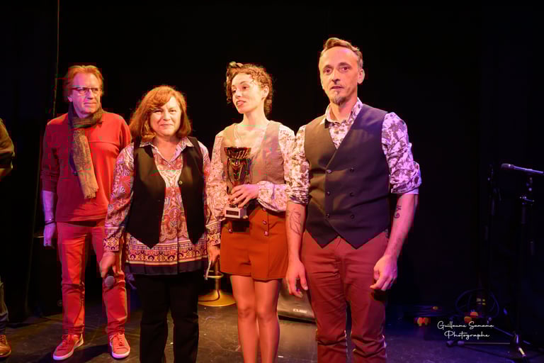 Le prix coup de Coeur à la jeune et très belle chanteuse Léora Guillot avec ses chansons à texte Léora a touché le public et le jury avec son interprétation à la Jacques Brel.